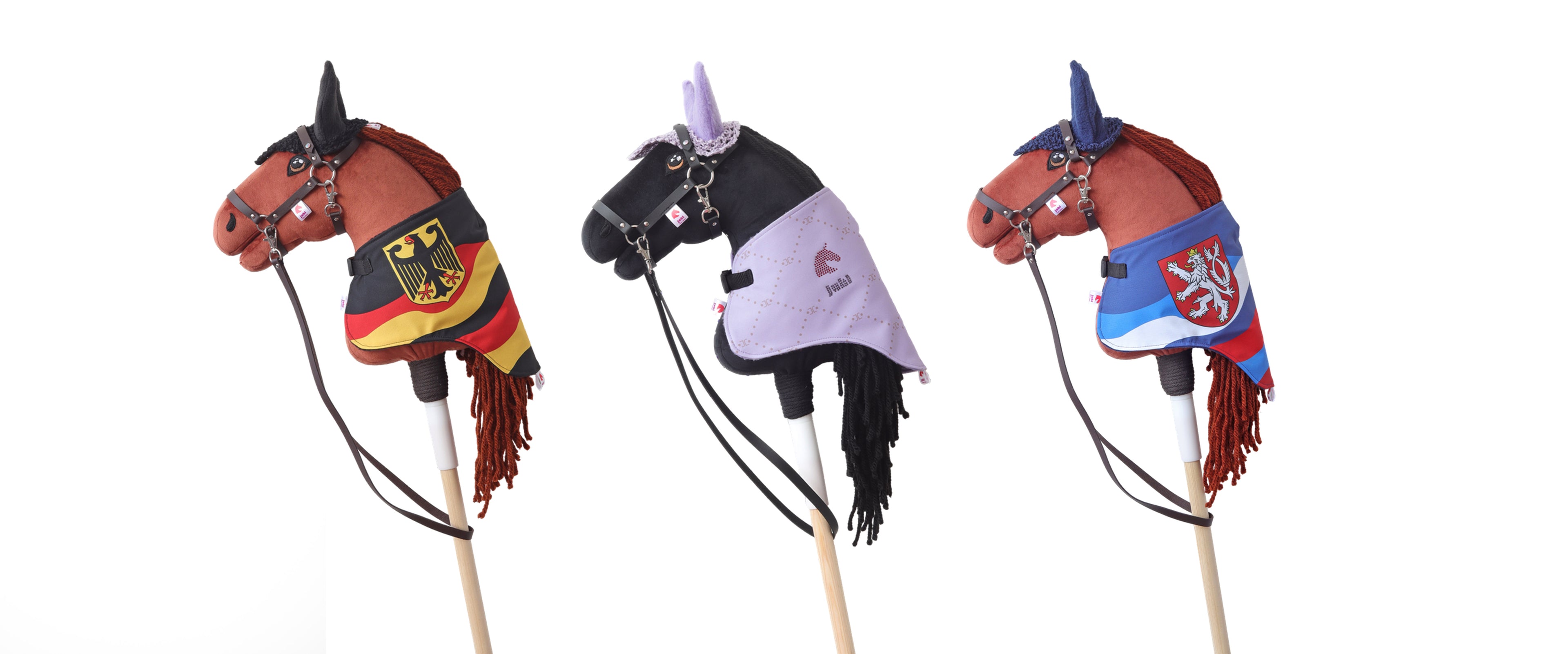 Unsere Hobbyhorses mit rutschfestem Griff sind aus sehr angenehmen und hochwertigen Materialien gefertigt. Jedes Hobbyhorse wird mit Halfter und Zaumzeug verkauft. Wir beschränken die Verwendung von Plastik und verpacken jedes Hobbyhorse sorgfältig für den Transport in einem originalen JUHI-Rucksack, der mit Swarovski-Strasssteinen verziert ist und den Du beim Kauf kostenlos erhältst. Alle Produkte werden in der Tschechischen Republik von unseren behinderten Mitarbeitern hergestellt.