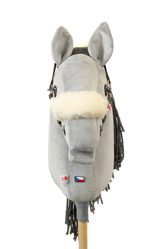 Halfter mit Merinowolle, Ecoleder, schwarz mit Silbermetall - Fohlen