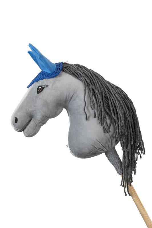 Gehäkelte Fliegenhaube - dunkelblau mit blauen Ohren - Pferd Groß