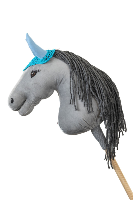 Gehäkelte Fliegenhaube - Türkis mit blauen Ohren - Pferd Groß