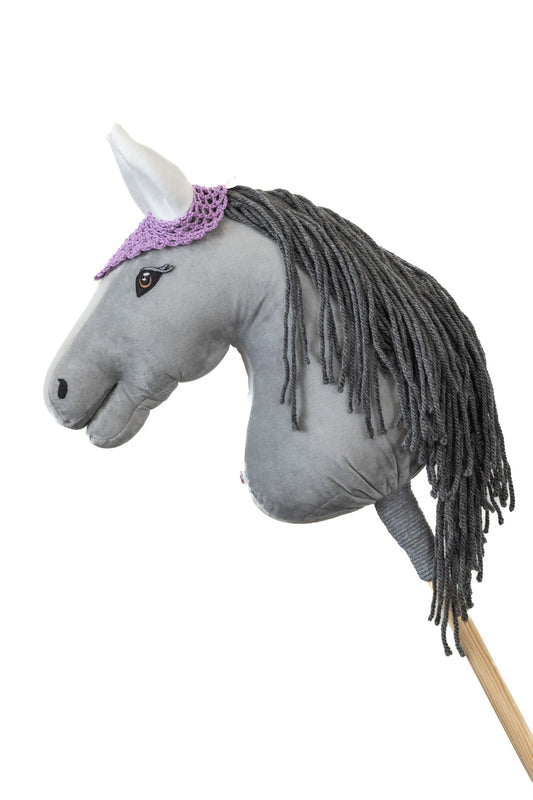 Gehäkelte Fliegenhaube - Lila mit weißen Ohren - Pferd Groß