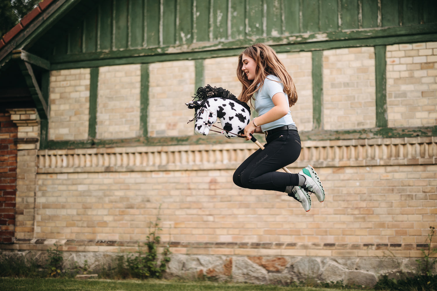 Mit unserem eigenen Patent für die Befestigung des Hobbyhorse am Stock musst du dir keine Sorgen machen, dass dein Hobbyhorse auf dem Stock verrutscht oder beim Ritt umkippt. Der hölzerne Stock hat außerdem eine Sicherheitsvorrichtung, die verhindert, dass sich der Stock aus dem Hobbyhorse herausbohrt, so dass keine Verletzungsgefahr besteht und jeder Ritt von dir stabil und sicher ist.