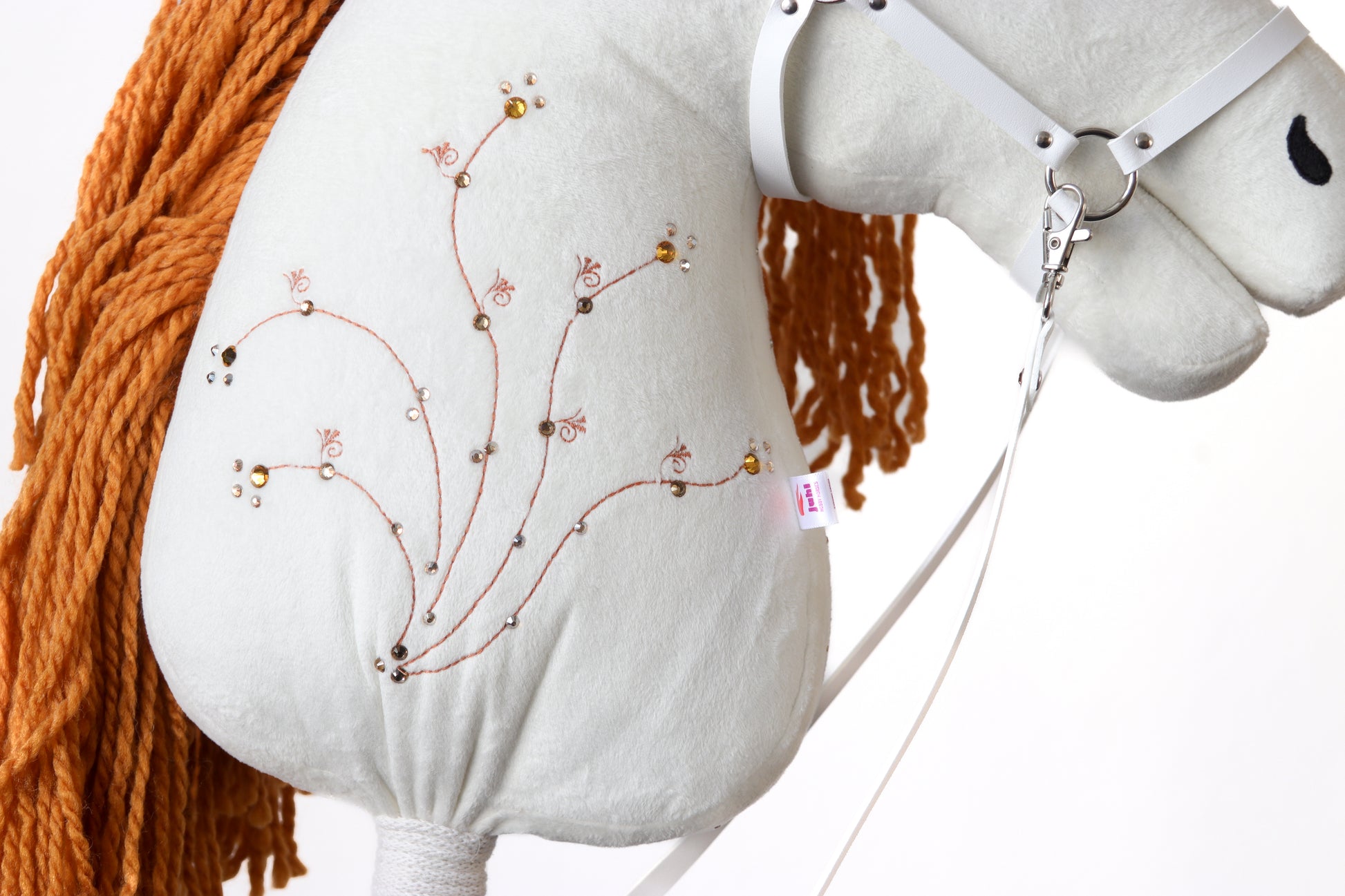 Wir legen zum Hobby Horse zusätzlich kostenlos die Ausrüstung bei – ein Halfter mit Zügel (schwarz oder braun), eine Schleife und einen wasserdichten Rucksack mit Swarovski-Kristallen.
