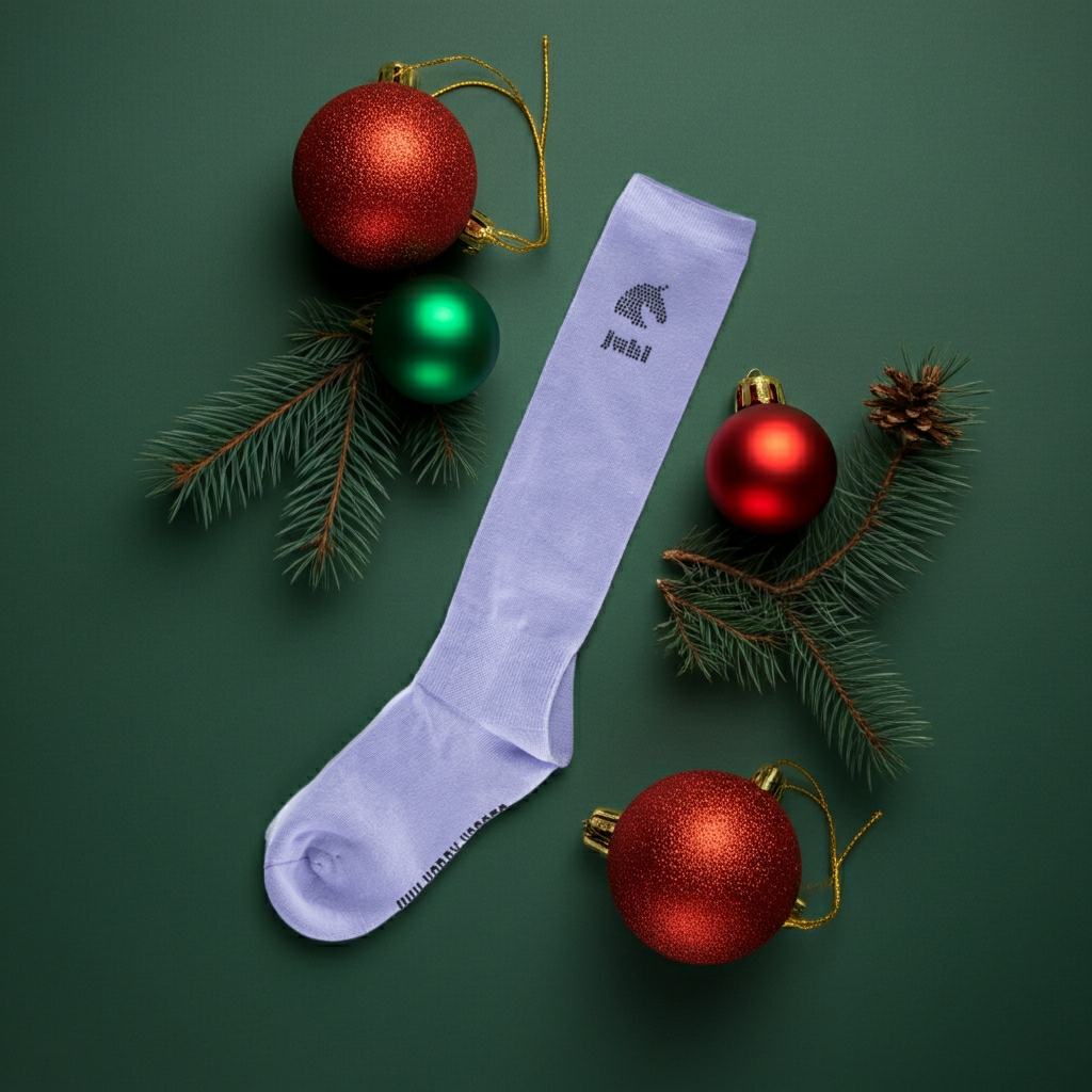 Sehr hochwertiges und strapazierfähiges Material mit weichem Frotteefutter für den gesamten Fußbereich, das den Aufprall beim Springen mit dem Hobbyhorse dämpft und auch beim täglichen Tragen unserer JUHI KNIESTRÜMPFE für angenehmen Komfort für den Fuß sorgt. Verziert mit Swarovski-Strasssteinen mit dem original Logo JUHI.