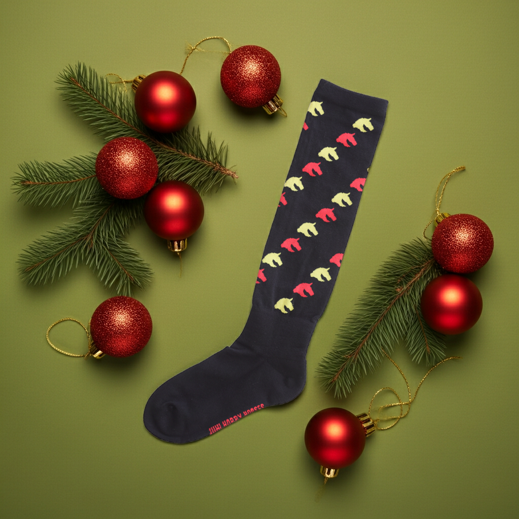 Kniestrümpfe für Hobbyhorsing schwarz mit Pferdemotiv
