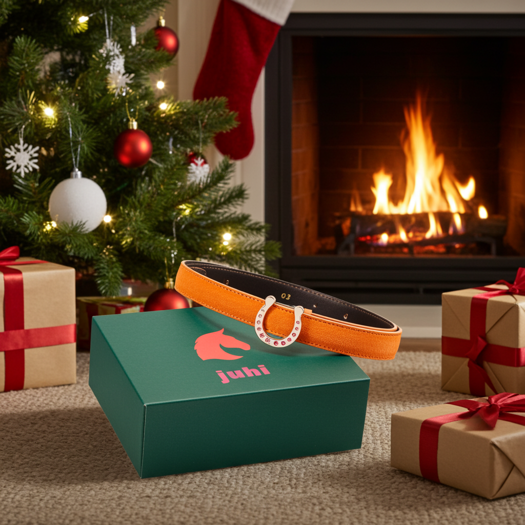 Inspiriert von der edlen Eleganz des Reitsports ist dieser wunderschöne Gürtel mit austauschbarer Schnalle eine atemberaubende Ergänzung für jedes Outfit. Die hufeisenförmige Schnalle, besetzt mit Swarovski-Steinen in warmen Rot- und Rosatönen, verleiht dem Gürtel eine interessante Kontur.