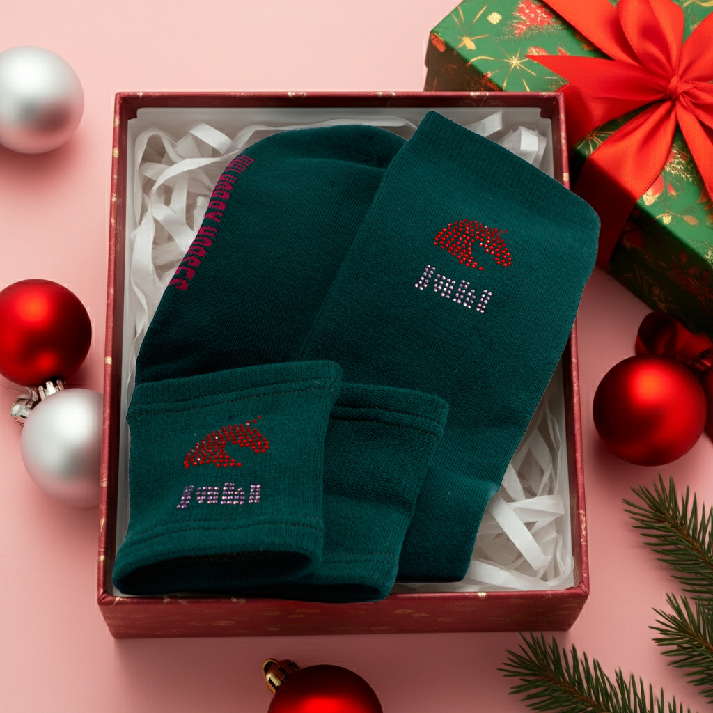 Schweißbändern und Kniestrümpfen SET für Hobbyhorsing dunkelgrün