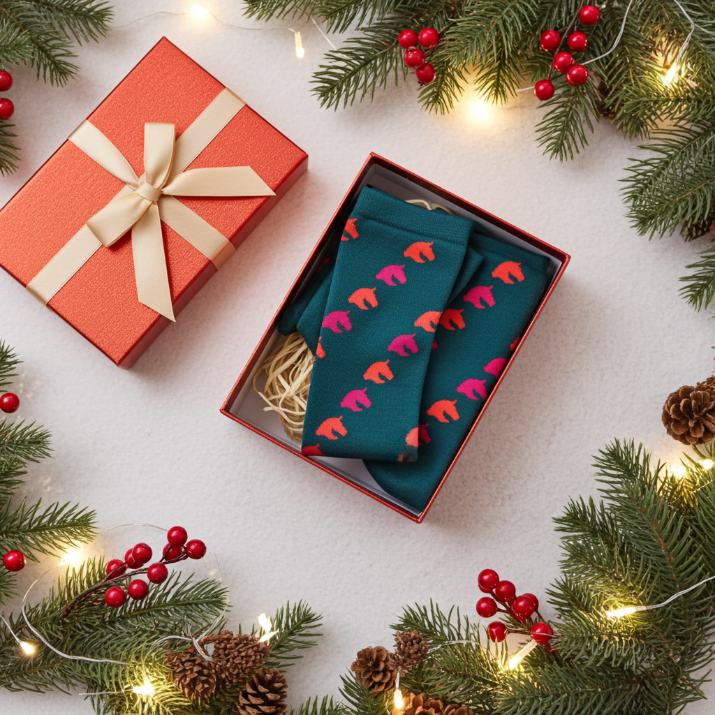 Schweißbändern und Kniestrümpfen SET für Hobbyhorsing grün mit Pferdemotiv