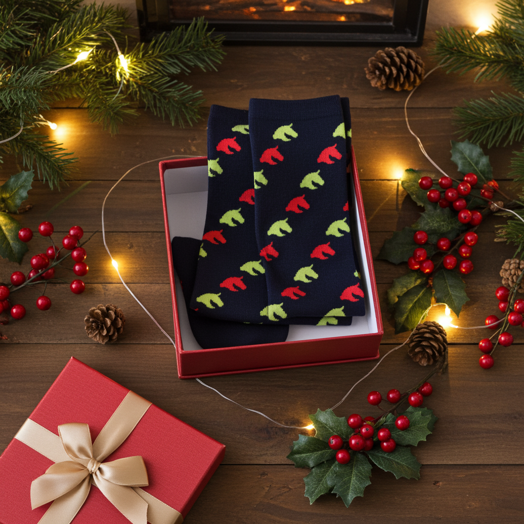 Schweißbändern und Kniestrümpfen SET für Hobbyhorsing schwarz mit Pferdemotiv