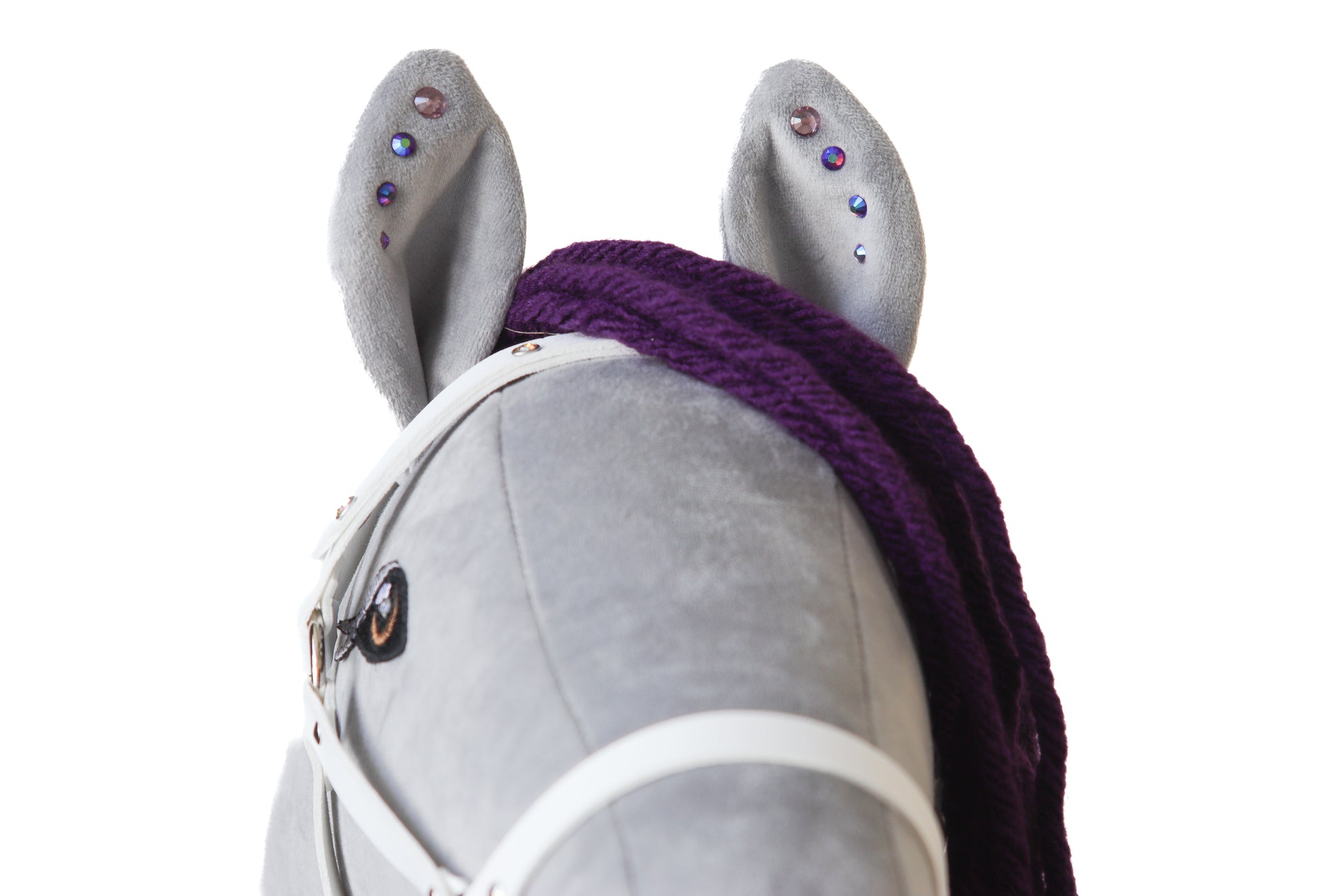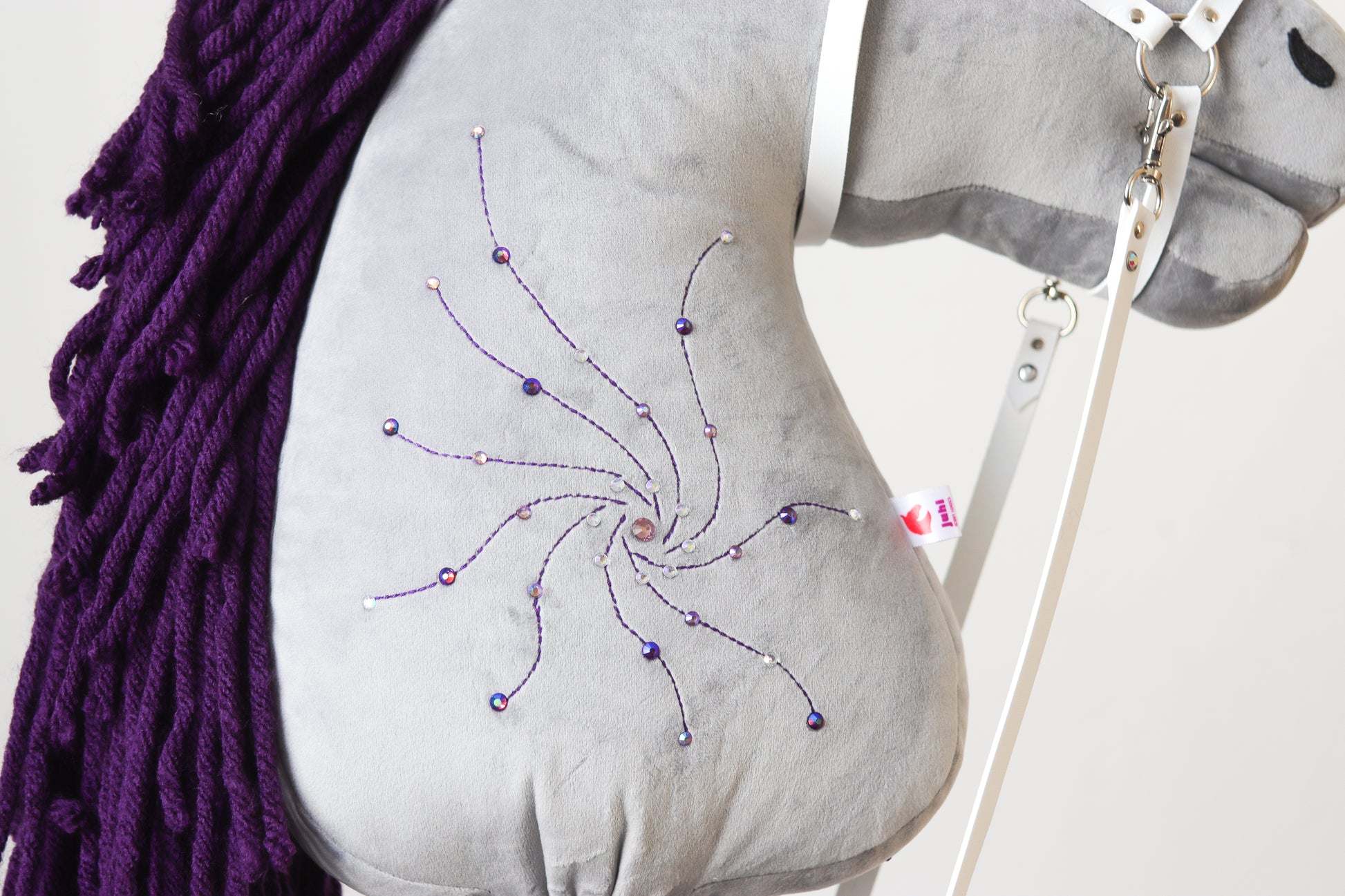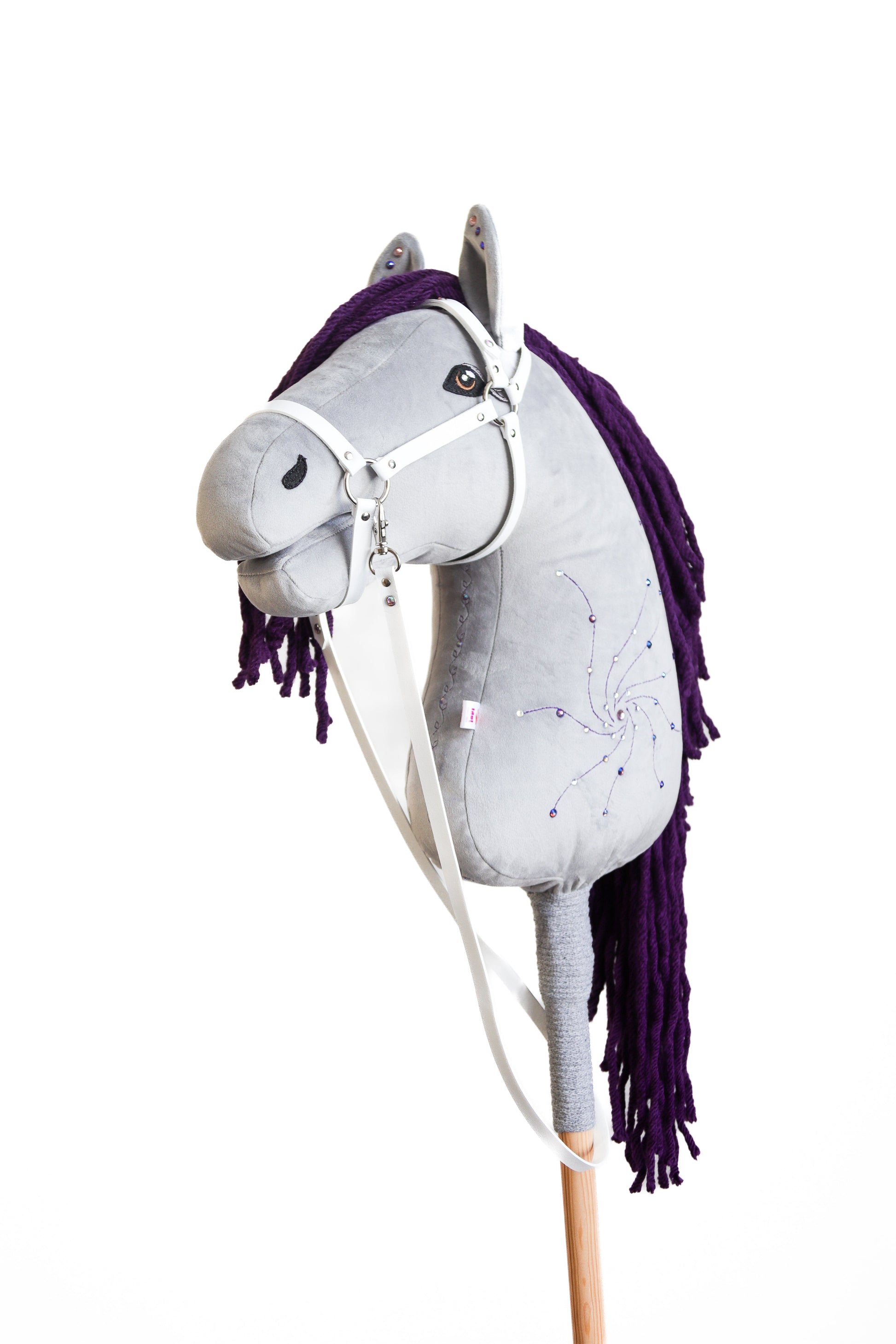 Wir legen zum Hobby Horse zusätzlich kostenlos die Ausrüstung bei – ein Halfter mit Zügel (schwarz oder braun), eine Schleife und einen wasserdichten Rucksack mit Swarovski-Kristallen.